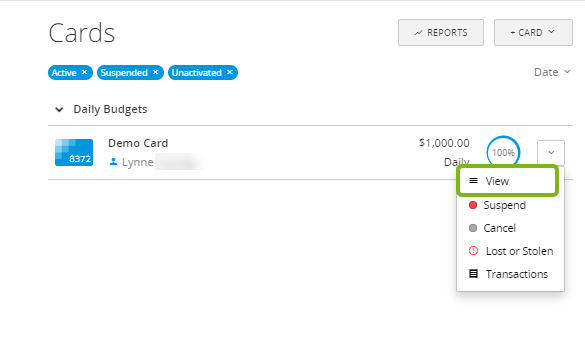 If the card has a set budget, to allow for more purchases to be made on the card the amount the card can spend must be increased. Review the spending restrictions by clicking on the card from the Cards screen.
