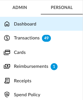 Emburse Spend administrators have access to both the Personal and Admin dashboards, which allow admins to monitor company spending and card activity.