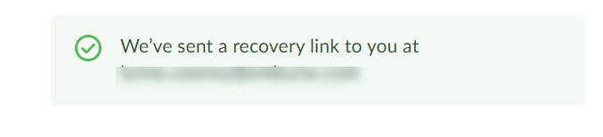 3. A popup message appears, informing you which email we sent the recovery link to.