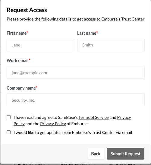 6. The request will be sent to Emburse's Security team for review. If it is approved, you will be emailed a link that can be used to download documentation from the Trust Center.