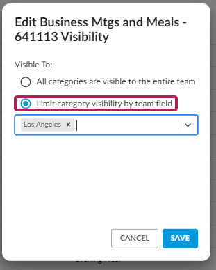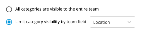 In this example, the Team Field we're using to limit the visibility of the categories is Location.