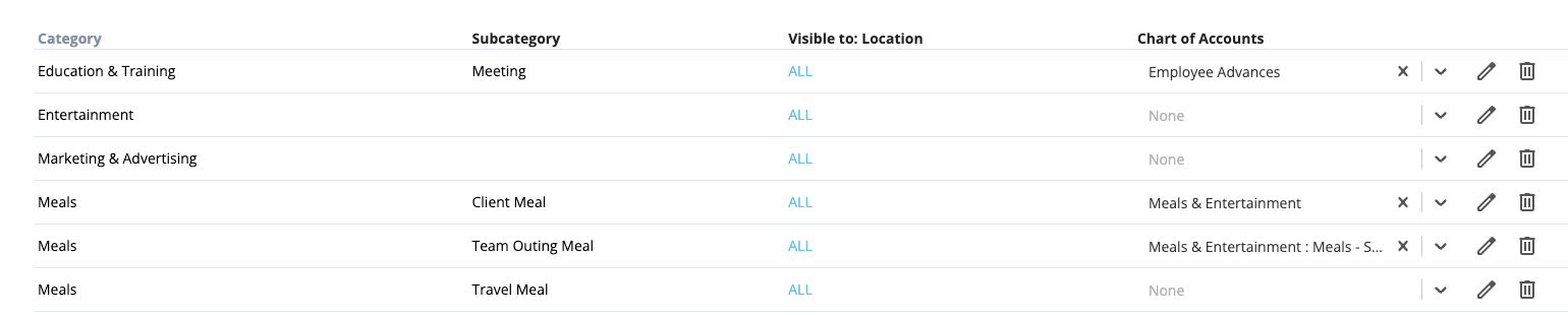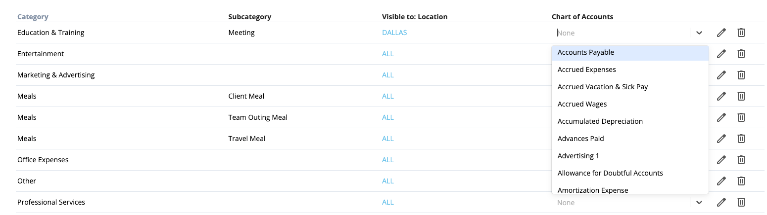 3. Next, map each category to the corresponding Chart of Accounts in your accounting platform: