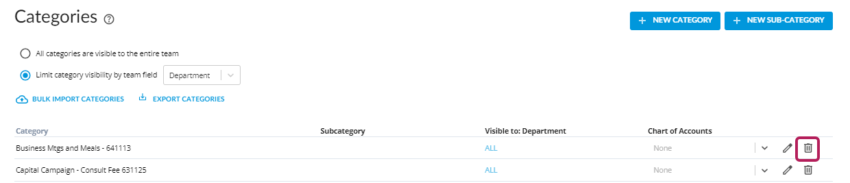 7. To delete a category, click on the Trash Can icon.