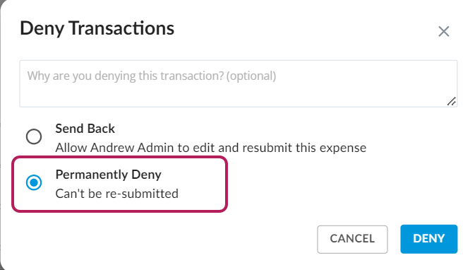 3. Permanently deny any expenses that should not be paid out.