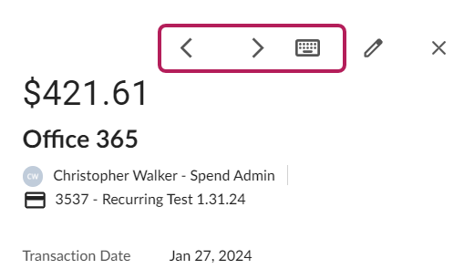 4. You can move to the next transaction needing approval by using the Navigation arrows at the top of the screen or by using the keyboard shortcuts.